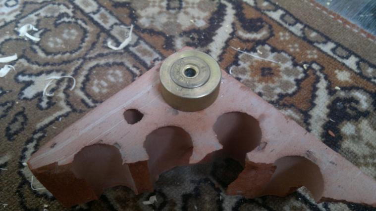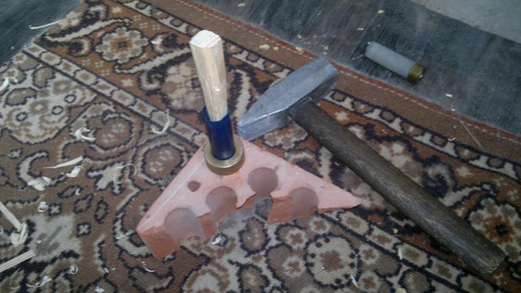 Громко не смейтесь! :):):)Каменный век в прошлом, настал деревянный! Т.к. на работу сегодня не вызвали, дай думаю гильзы бу переберу. Отобрал несколько, надо донце обжать. Дежурный кирпич лежит на балконе, кто помнит его (по моему пост №96). Посмотрел на него, опять колошматить молотком, соседей пугать. Хотел приспособу какую-нибудь сварить в деревне, но руки так и не дошли. И стучать молотком как-то не охото. Вообщем увидел на балконе брусочки оставшиеся после ремонта и понеслась . . . :):):)