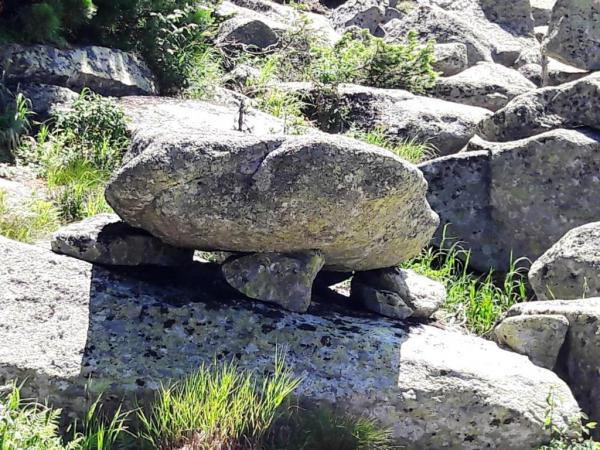 Когда спускался к останцам в укромном месте на верху за Верблюдами нашел вот такой камень. Камень в диаметре метра 3-4 и весом в 1,5-2 тонны, и явно не природа его так поставила... Кто и зачем? Явно какой-то древний жертвенник!