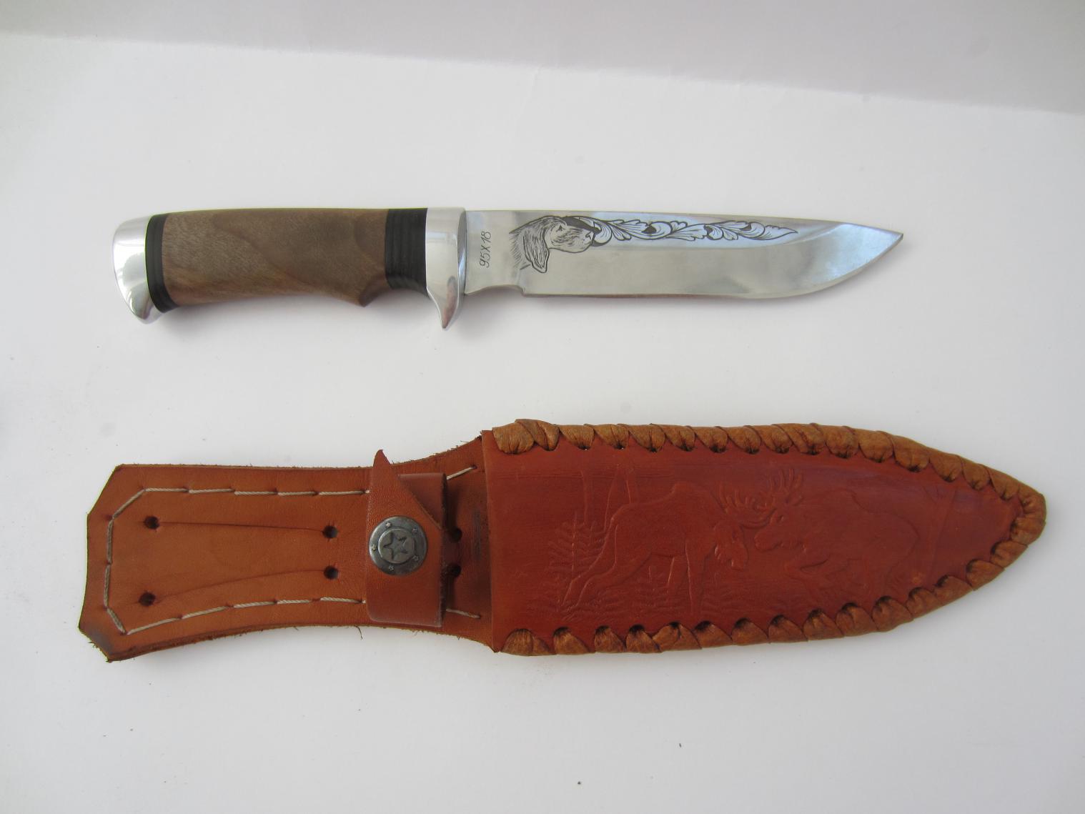 Лот 1: Клинок из Дамасской стали, отлично держит заточку. Длинна общая - 305 мм; длинна лезвия - 180 мм; толщина - 3,5 мм; ширина лезвия - 29 мм. Рукоять из рога лося, больстер - латунь (литье). Ножны кожа с твердым каркасом. Сам клинок покупал в Экспо Волге на выставке в 2013г., за 2000 руб., рукоять сделал сам. Цена лота: 2.500 руб. Вложение 12773 Лот 2: Нож "Турист", сталь 95х18. Подарок, была переделана рукоять: кожа, бук, дюраль. Монтаж сквозной, пропитка - льнянка. Длинна общая - 250 мм; длинна лезвия - 140 мм; толщина - 3 мм; ширина лезвия - 28 мм. Цена лота: 1500 руб. Вложение 12770 Лот 3: Нож Е192. Подарок от тестя. Клинок ковался из паровозного клапана на ЗИМе. Рукоять дюраль, кожа. Монтаж сквозной, пропитка - льнянка. Длинна общая - 300 мм; длинна лезвия - 190 мм; толщина - 4 мм; ширина лезвия - 36 мм. Цена: 2500 руб. Вложение 12774 Лот 4: Нож с правосторонним спуском, так же из паровозного клапана, клинок сработан там же. Рукоять: дюраль, кожа, красное дерево, рог лося. Монтаж сквозной, пропитка - льнянка. Длинна общая - 265 мм; длинна лезвия - 150 мм; толщина - 3,5 мм; ширина лезвия - 33 мм. Цена: 2000 руб. Вложение 12775 С ценой не борзел, оптом отдам за 8.000 руб. |
