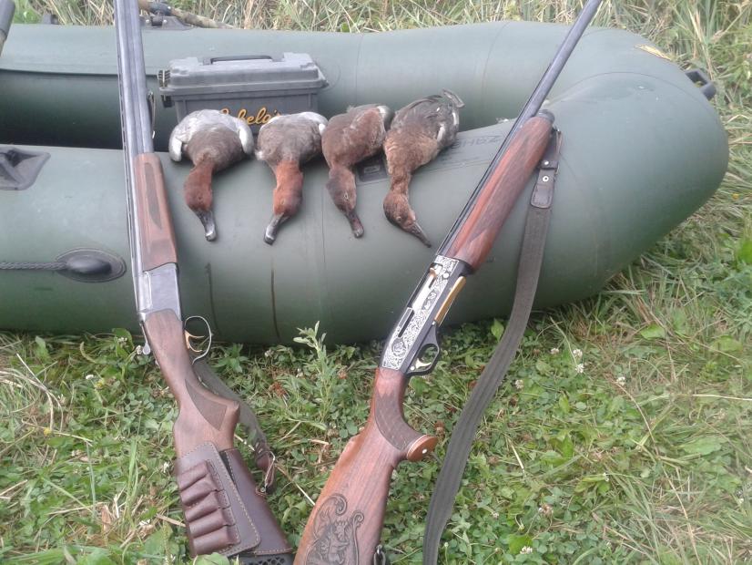 Открывались в Кондоре. Выехали не торопясь вечером в пятницу. Валим по полю, предчуствуя близость заветного места, и вдруг траншея перегородившая дорогу. Не хилая такая, не вручную выкопанная. Ну да ладно, благо ее не добросовестно выкопали в длинну. Нашлись как проехать даже на нашем пузотере. Прибыли, накачались, доплыли, поставили чучела. И уже на берегу ждем утра под мягкий свет фонаря и не торопливые разговоры. Хочется отметить, что в этом году не было стрельбы до срока – радует. Подъем в 3.00, сборы и уже на месте. Что сказать про утро: утка летала, соседи в приграничном охотхозяйстве давали ей «под хвост» для ускорения так, что у нас она была уже на турбо скорости и в стратосфере. Тем не менее забираем двух крякашей.