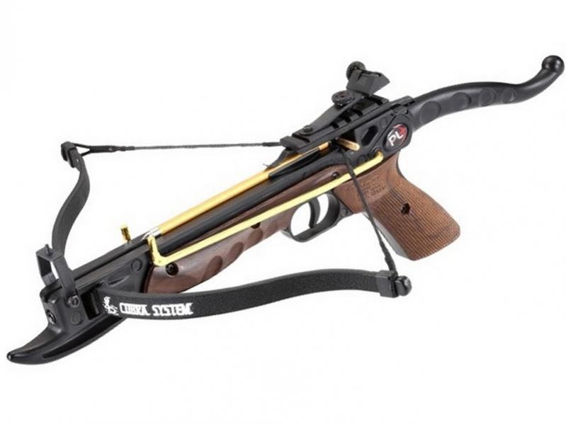 Данный арбалет на вид кажется игрушечным. И за чистую горе продавцы его советуют в подарок ребёнку. Но знайте что это далеко не игрушка. С пяти метров пробивает замороженную тушу курицы. Сила натяжения этого арбалета 36 кг. И сдвинуть спусковой крючок да же взрослому человеку не так легко. Прицельная дальность у данного арбалета в районе 5 ти метров. Что позволяет вести развлекательную стрельбу. На этот арбалет возможна установка колиматорного прицела. Есть ещё арбалеты -пистолеты с рычажным взводом в виде перелома приклада. Последний считаю менее удобный.[IMG]:///C:/Users/Notebook/Desktop/9000174290_1.jpg[/IMG]