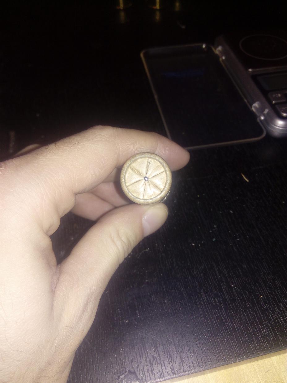 Что имеем: гильза папка новая шеддит, капсюль сх2000, порох g3000 1,6 гр. , пороховая прокладка диана 4 мм, пыж диана 16мм, дробь 1, звезда, (фаска у гильзы не снята, номер дроби позволяет...)