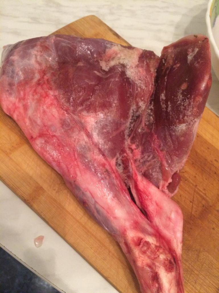 Всем привет. На свою днюху замутил такое блюдо: "Запеченные ноги сеголетка кабана и косули". Делал так: достал, разморозил... Натер солью, душистым перцем и прованскими травами... Через сутки выложил на противень сало свиное кусочками, сверху несколько кусочков, посыпал для кислинки брусникой и клюквой и добавил 50 грамм сухого вина Саперави... Далее сверху обмазал майонезом с чесноком, накрыл фольгой и в духовку на 2 часа при 170 градусах. Очень мягкое и нежное мясо (от кости отходит)... Всем приятного аппетита!