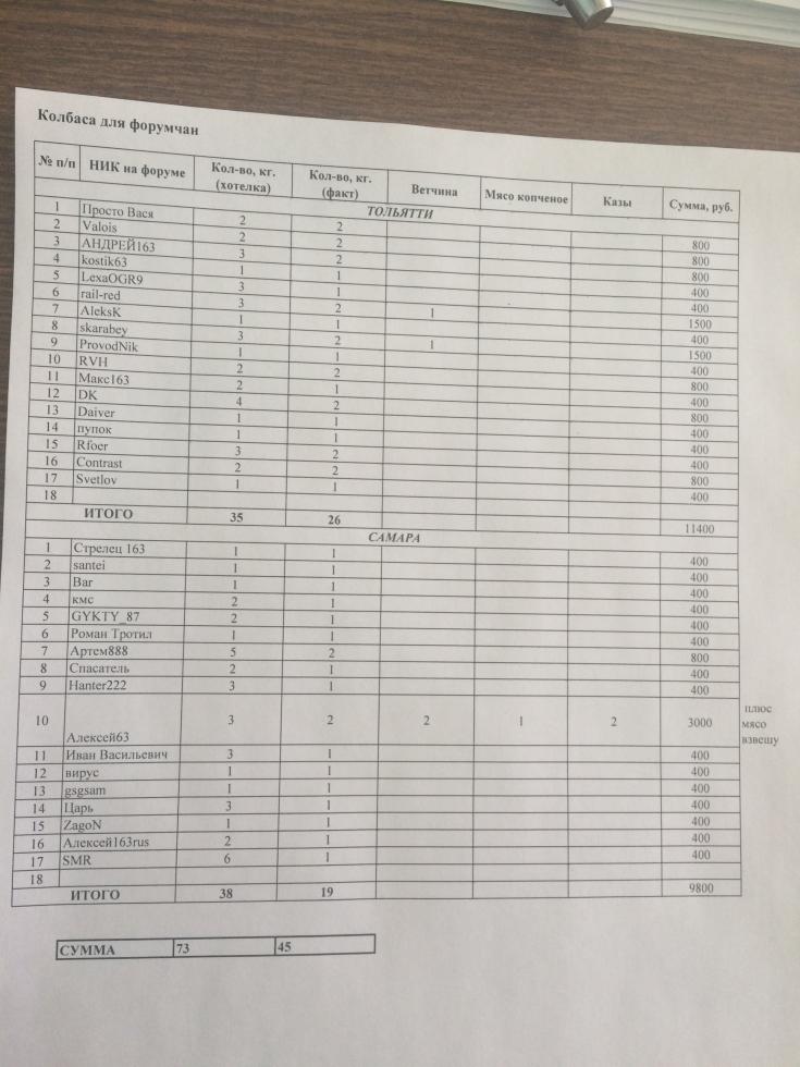 Произошел казус, я забыл включить себя и своих родственников. Доп партия не образовалась. Всего 51 кг. колбасы, из которых 6 моих родственников и мои. Прошу понять и простить... Разделил так: кто первые мне звонили - добавил и те кто немного быстрее были тут... Еще раз говорю, ни каких обид, я вынужден был кого то порезать в Заказе... Окончательный список с суммами, можно переводить на карту № 4276 5400 1887 1784 Алексей Алексеевич М. с Ником участника. К телефону привязана 892777847бо.