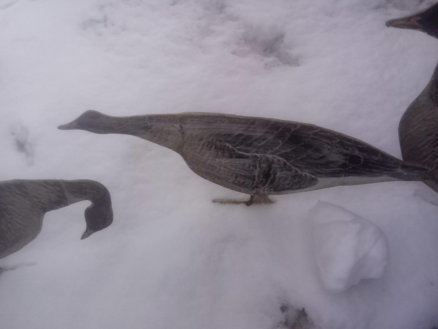 Сделаны из пластика обклеенной фото бумагой с изображением гуся, на электроде для установки в поле. Кормящиеся, сторожевые и отдыхающие всего 25 штук. За всё 1500 т.р. (торг). Переходим на корпусные.