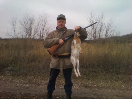 Всем привет.Сегодня открылся по "пуху". Времени на охоту было отведено не много (ехал с женой из гостей). Проезжая мимо угодий, что вписаны в путевку,уговорил супругу отпустить меня погулять с ружьем на 2 часа (она осталась в машине). Как итог: хорошо надышался кислородом, заяц добыт, во времени уложился. Был поднят в траве на целине, в метрах 20 от озимых. Добыт "тройкой-самокрут", полу-чек ИЖ-26.