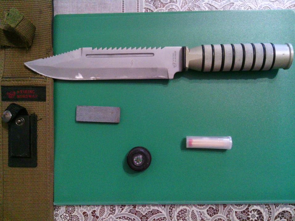 Большой нож "для выживания" с полой рукояткой, содержащей НАЗ (носимый аварийный запас)