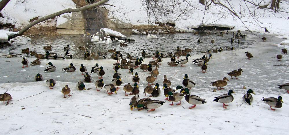 Крякаш как на подбор.))) Покормили, полюбовались))... Когда уходили, подняли партечку куропаток.