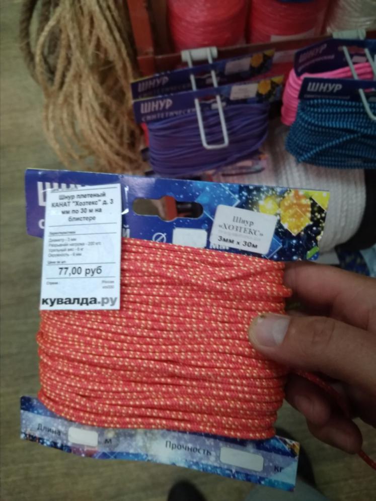 В качестве основного шнура было взято изделие ООО "Канат" - шнур Хозтекс 3 мм, длиной 30 метров. Намотал на обычное мотовило из фанерки.