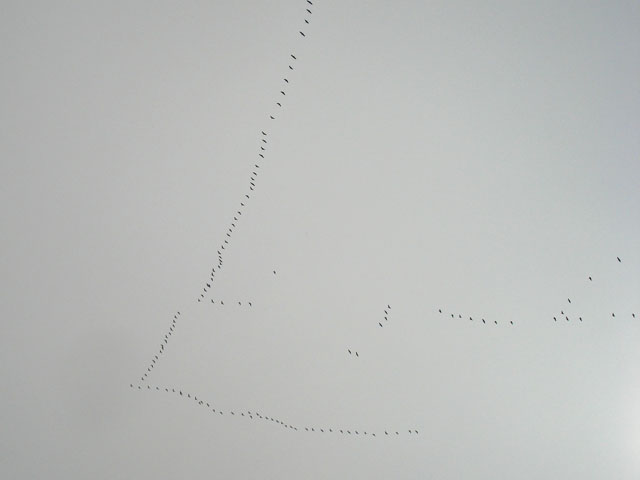 Сегодня утром погода мерзкая ветер с дождем, стая гусей голов 30 упала на край поля и на призыв тоже игнор, я их отчетливо видел в бинокль. посидят перелетят опять посидят.