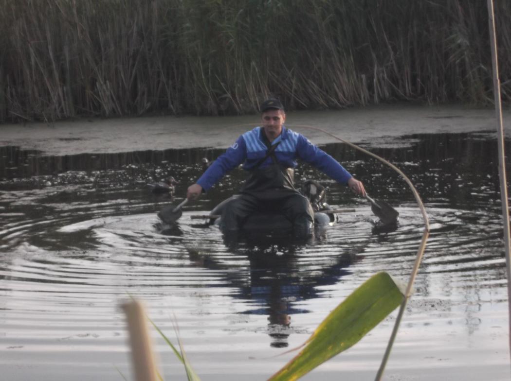 Засидку обновил, флотилию из 7 псевдоуток выставил. Теперь заснуть бы , а то ведь как в первый раз ждёшь когда будильник в 4-00 прокукарекает. Сделал наконец то фото как я плаваю на баллоне ( спрашивали несколько раз). Да лодка лучше , но баллон компактнее. Кувыркнуться можно , но для этого надо быть под шафе. А я всегда за рулём. Так что всем ни пуха ни пера.