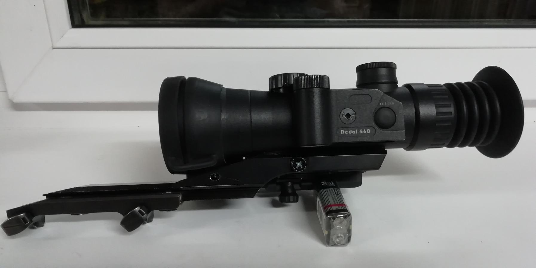 продам ночник 3 поколения Дедал-460 ДК3 2014 г. с кронштейном на Блейзер. стоит подсветка пульсар-940. дедал-460 самый маленький ночник, вес 560 гр. В отличном состоянии. стоял на Blaser R93 9.3х62. в поле зрения есть пятнышко, на фото видно, не на что не влияет, не увеличивается, не уменьшается. за все вместе 100 т.р. без торга. вот такой -