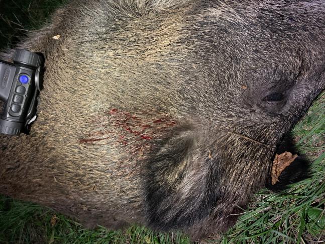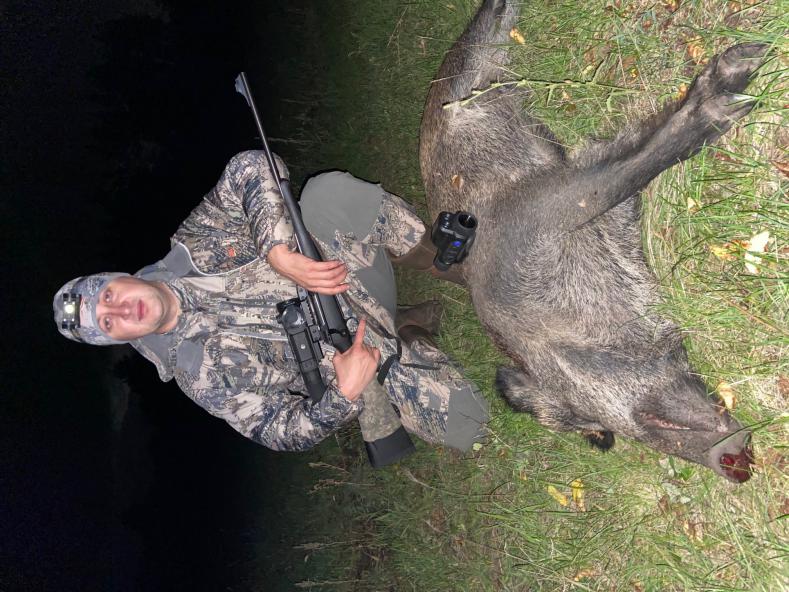 Но мы уже видели эту компанию в прицел, когда они мелькали сквозь деревьев, не отчетливо, но вполне понятно кто там есть – кабаны. Здоровая мать, 6 мелких сеголеток, 3 средних свиньи (няньки скорее всего), а за ними 6 особей чуть крупнее сеголетков, один хромает на правую ногу – последние шесть, а вернее шестой наши «клиенты». Все вокруг замерло, в голове слышно стук сердца.