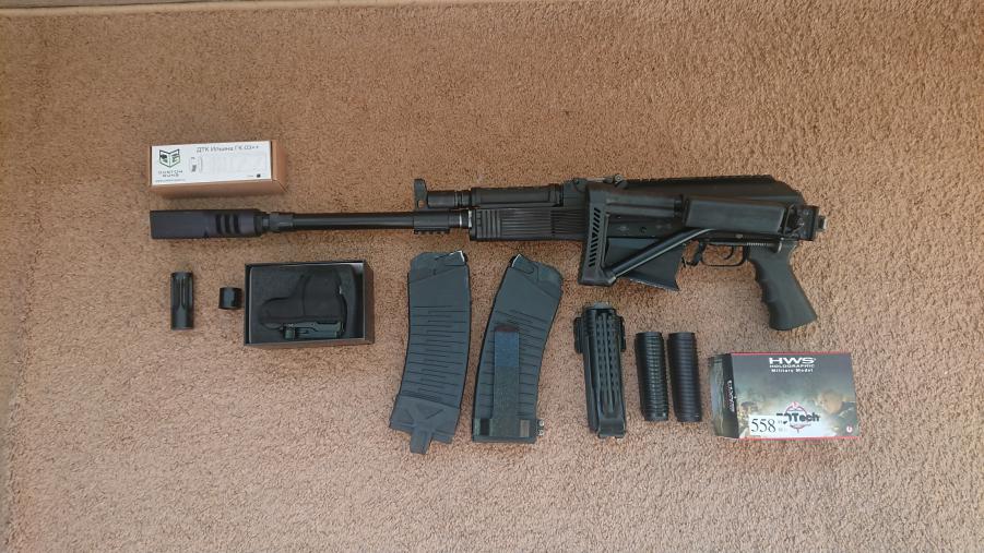 Продам вепрь ВПО 205-00. Ствол 430 мм. Выпуск 2014 года, я второй владелец. Все притёрто, пристреляно. С получёком и ДТК стабильно переваривает навеску 24 грамма. Настрел около 200 выстрелов у первого хозяина и 400 выстрелов у меня. В комплекте само ружьё, штатный пламегаситель, штатная гайка защиты резьбы, 2 магазина по восемь мест, брезентовый чехол для транспортировки и нижеперечисленные допы.