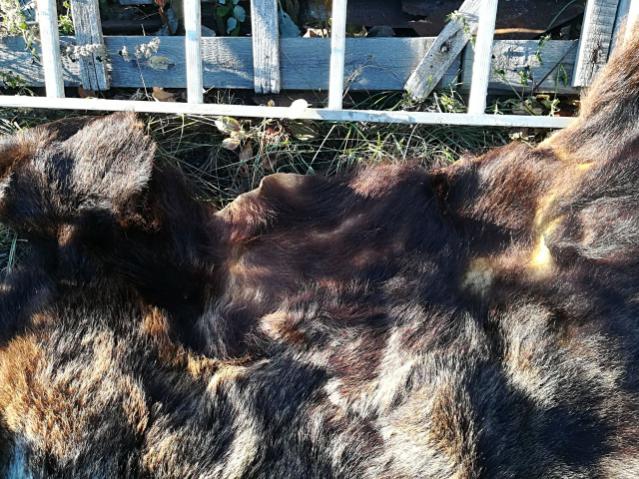 Медвежью шкуру с сибирского медведя средних размеров, неотделанную, ~7 лет, небольшие потёртости, на 1 лапе нет когтей, за 30 тыс. руб. продаю.