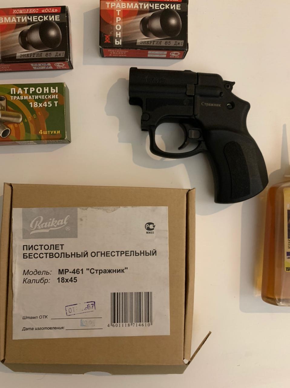 Продам и переоформлю в соответствии с законодательством пистолет бесствольный огнестрельный МР-461 "Стражник" с предохранителем. Калибр 18*45. К нему в подарок 4 упаковки патронов. Состояние отличное, настрел максимум 5 выстрелов. Стоимость всего комплекта 2290 рублей. Тел. +79063382925.