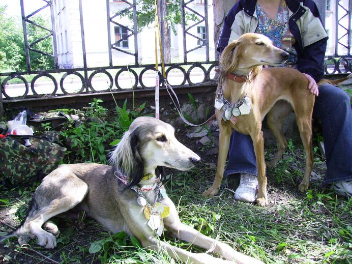 на фото серая-мать,половый-отец.Обе собаки с казахскими документами, кобель родом из хороших казахских питомников Эльхор и Байконур г.Алматы-привозился мною из Ростовской области,когда искал-ближе хороших собак не оказалось). На фото с медалями-предки кобеля.