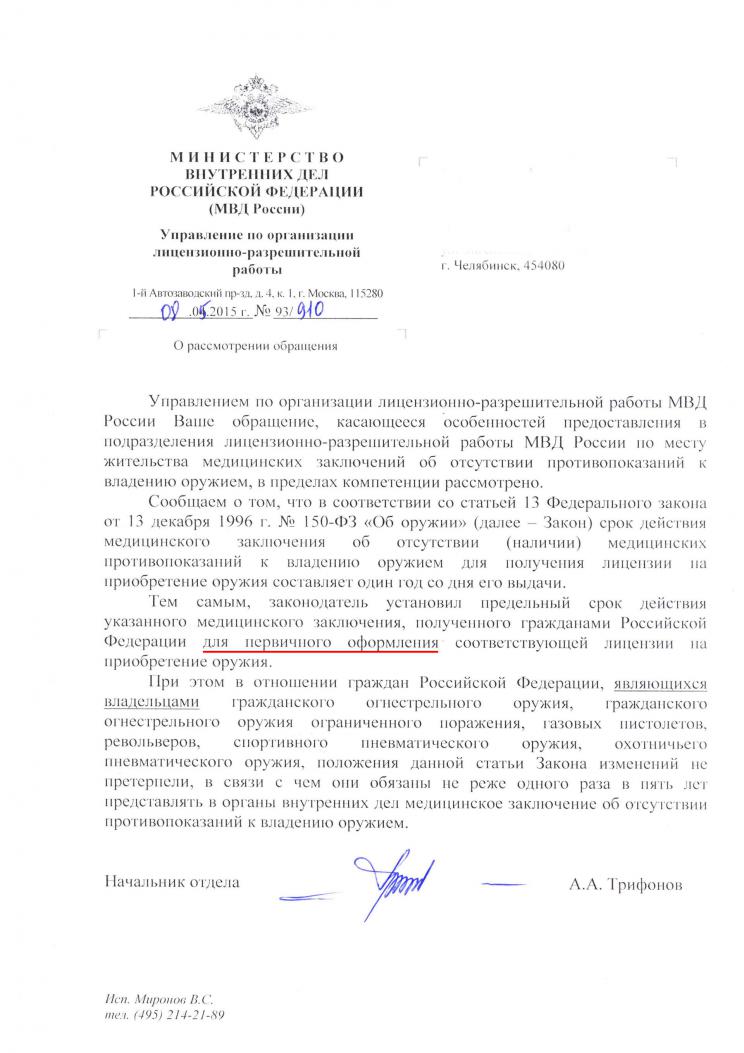 Пришлось опять нормативную базу изучать. Результат: для первоходов срок действия справки - 1 год с момента получения! Для имеющих оружие - раз в пять лет. Для подтверждения письмо из Московского Управления. P.S. Всех кому сэкономил полтора дня времени - и не благодарите ))