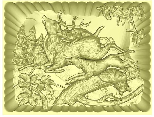 Панно "Лось и волки" размер 38*29 стоимость 4100 руб.