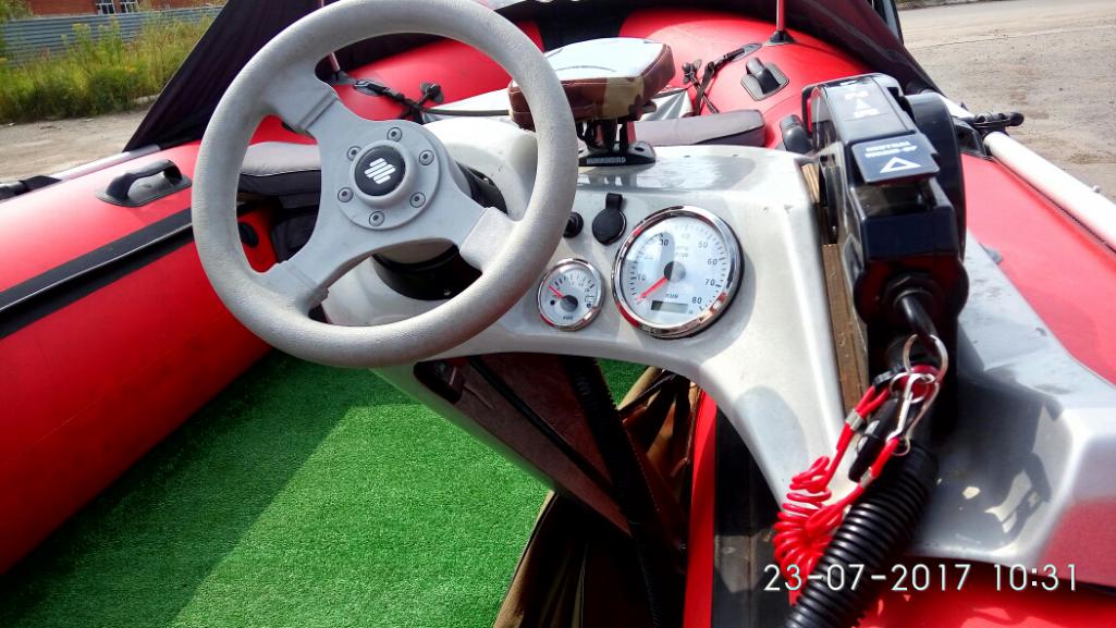 Дополнительно: Мини консоль, редуктор, руль, трос рулевой, троса газ/реверс (без приборов) -18000. Тент стояночный - 6000.