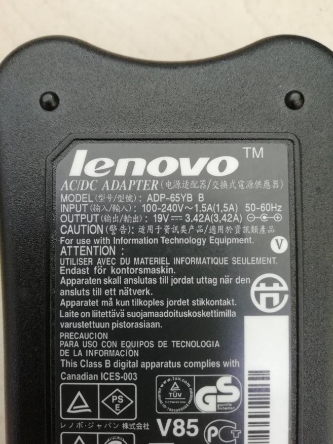 по току не менее 3A , по вольтажу был на 20v, но если такого нет, то сгодится и на 19