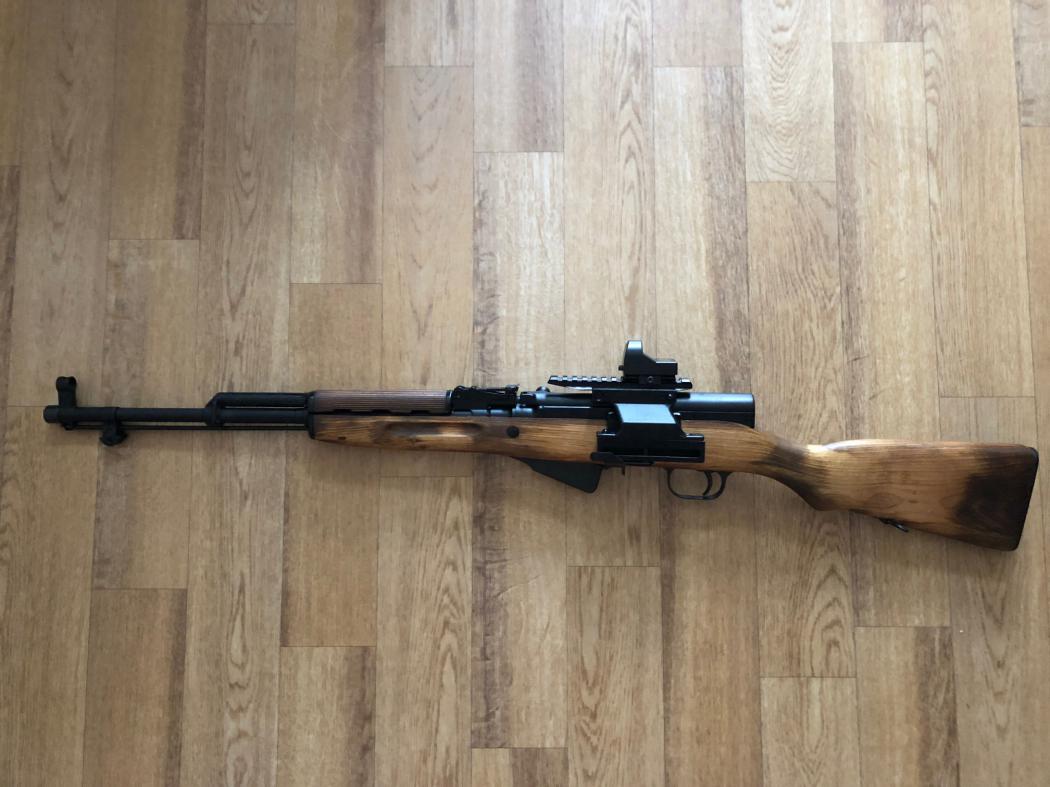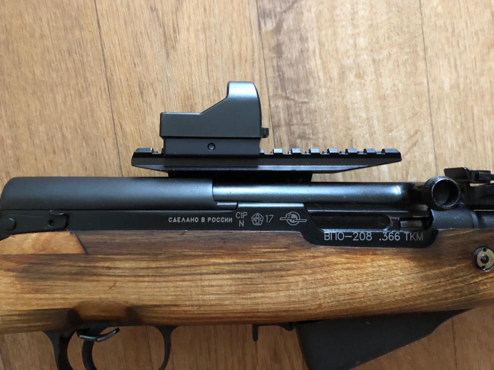 "Гладкоствольный" СКС. Настрел 30патрон. Коллиматор HAKKO BED-XT6, крон быстросъемный под вивер, чехол. 40т.р.
