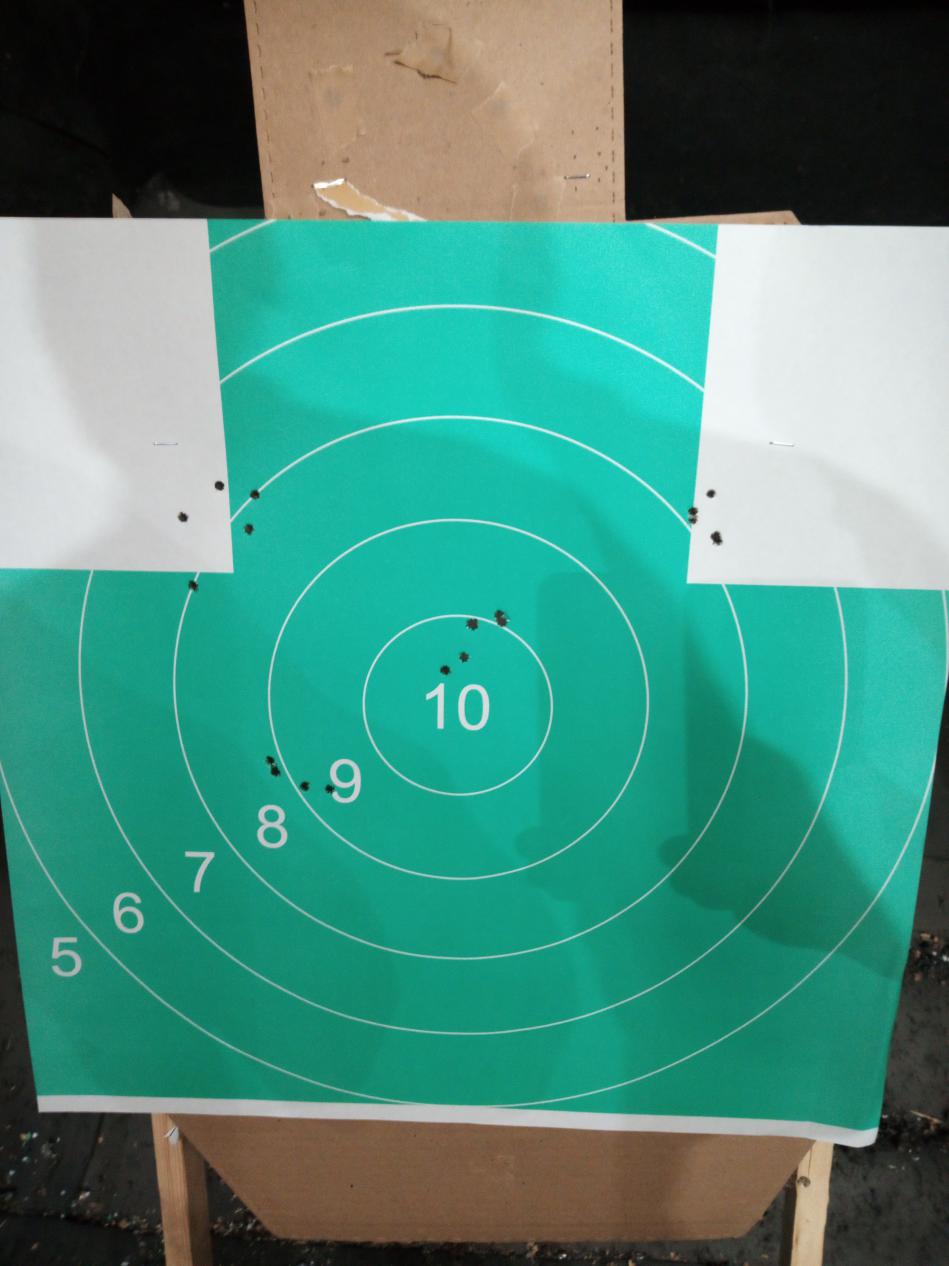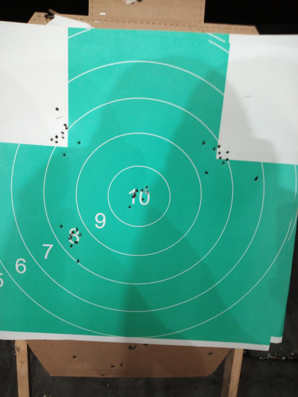 сегодня стрелял, там где фото по 5 выстрелов - попытка стрелять на точность, там где по 10 выстрелов - стрельба в быстром темпе (получилось точнее =)