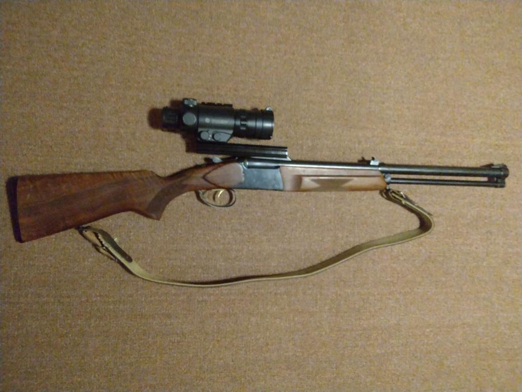 Знакомый попросил выставить тут на продажу ружье ИЖ-94.верхний ствол 12кал,.нижний 308.установлен ночник. ценник 45 руб.