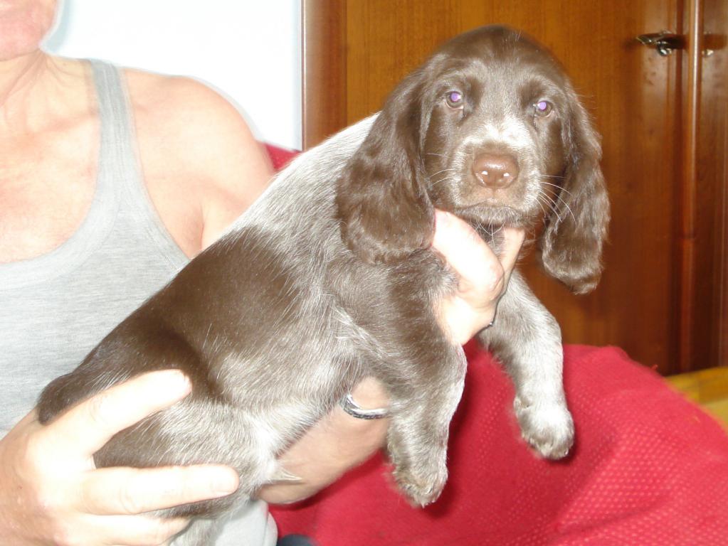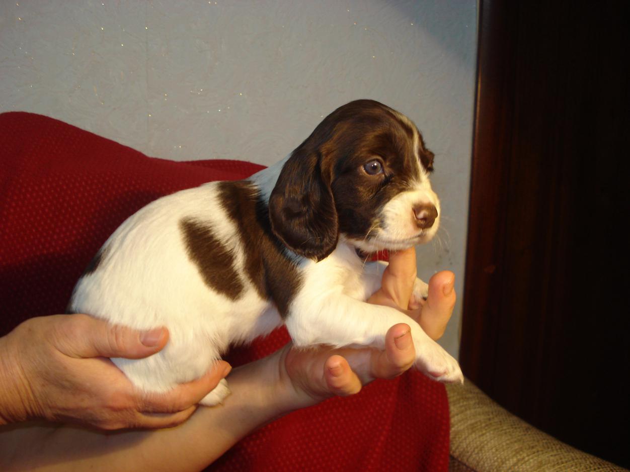 Отец: Агат (Саратов) вл. Жарков А.А. Окрас Черно-пегий в крапе с подпалом. Отлично. Дипломы : II - полевая дичь (2 шт), III — перепел (3 шт), III – Утка .