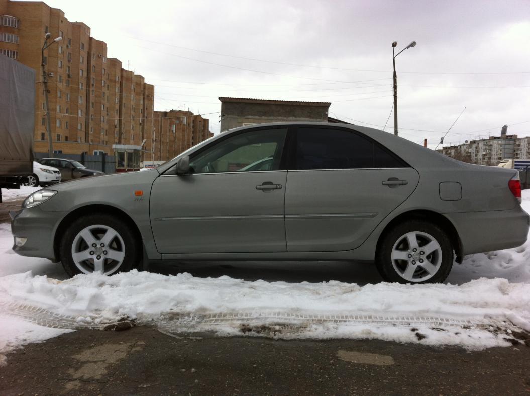 Продаю Toyota Camry 2004 г. в отличном состоянии, серо-зеленого цвета, двигатель 2.4, пробег (родной) 147 000 км, АКПП 5 ступ., климат контроль, ГУР, электр.зеркала, обогрев сидений, салон велюр, датчик дождя/света, мульти руль, парктроник задний, омыватели фар, автозапуск на новой зимней резине Toyo. В комплекте летняя резина. Вложений не требуется. 580 000 рублей. Торг уместен.