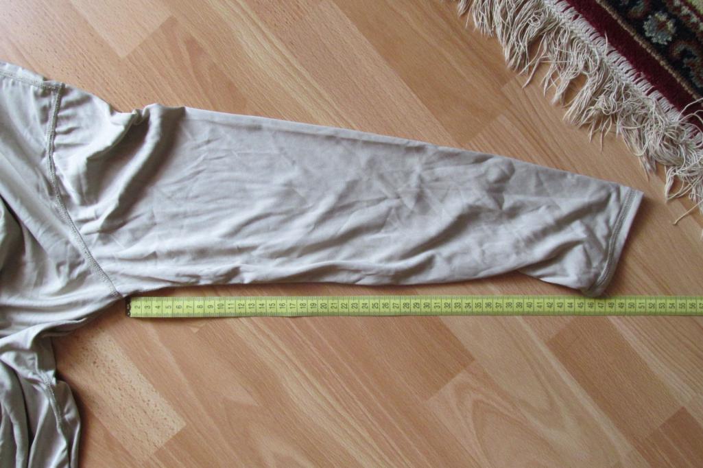 - Первый слой комплекта - кальсоны и рубашка с длинным рукавом - по сути это нательный слой белья , является термобельем , этот слой отводит лишнюю влагу(пот) от тела . Цвет бежево-песочный.