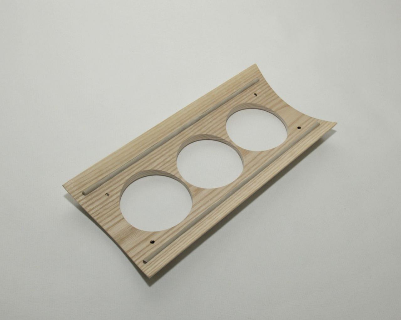 Декоративные деревянные накладка на скошенный потолок. Для монтажа светильников, люстр и любого рода подсветки, на мансардном этаже дома. Полкодержатель на бревно Материал: массив ясеня мебельной сушки. Помощь в определении размера угла скоса и диаметра бревна. |