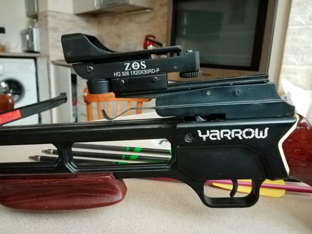 Арбалет спортивный Yarrou, рекурсивный, винтовочного типа. Идеально для начинающего стрелка. Ничего лишнего, минимум пластика, только хардкор - металл и дерево. В руках ощущается весомо, а не как игрушка. В комплекте простенький коллиматорный прицел-китаец (красная точка). Также есть штатный прицел с мушкой. Аппарат абсолютно законный, натяжение плеч до 43 кг, но достаточно убойный. Также отдам 3 карбоновые и 1 алюминиевую спортивные стрелы со съёмными наконечниками. Отлично помогает снять стресс. Цена 7500