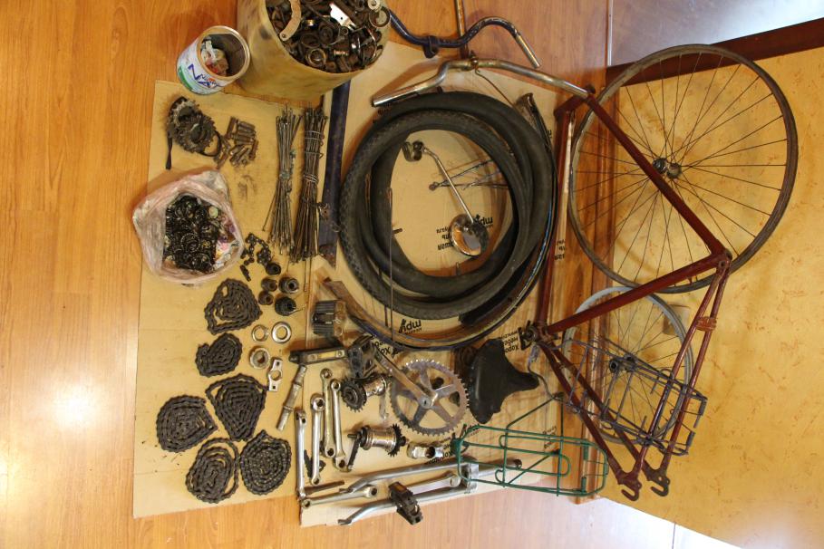 Примечание: да, если что сломается (хотя ранее, когда сам ездил на велосипеде на охоту из деревни в мордовские леса, поля и озера - проблемок кроме спушенных колес не было) запчасти от 50р все в наличии (на фото).