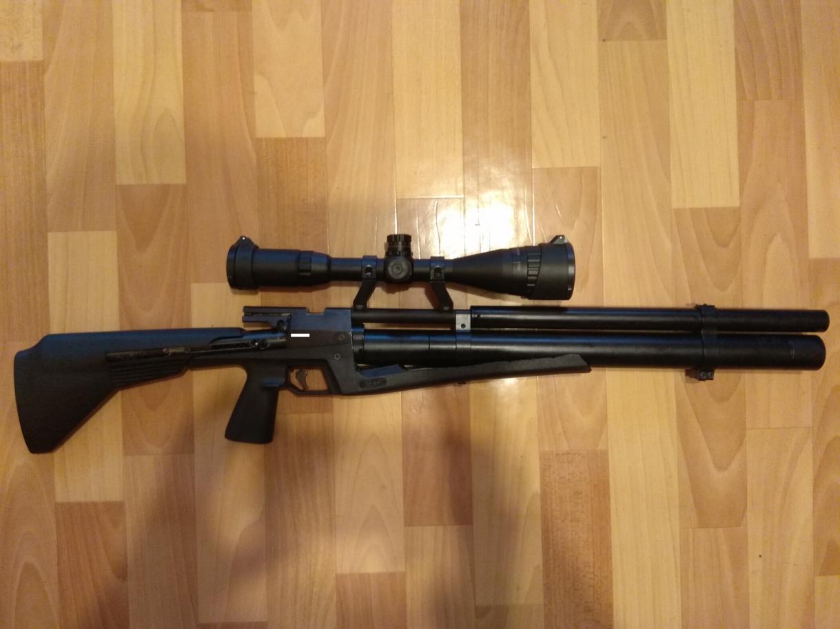 База иж 60 стальная коробка, кит снайпер, резервуар 430мм увеличенный с редуктором, прицел Липерс 3-9х40, есть ЗИП резинок и клапан, в подарок банка пулек JSB 0,87гр, которые винтовка с удовольствием кушает.