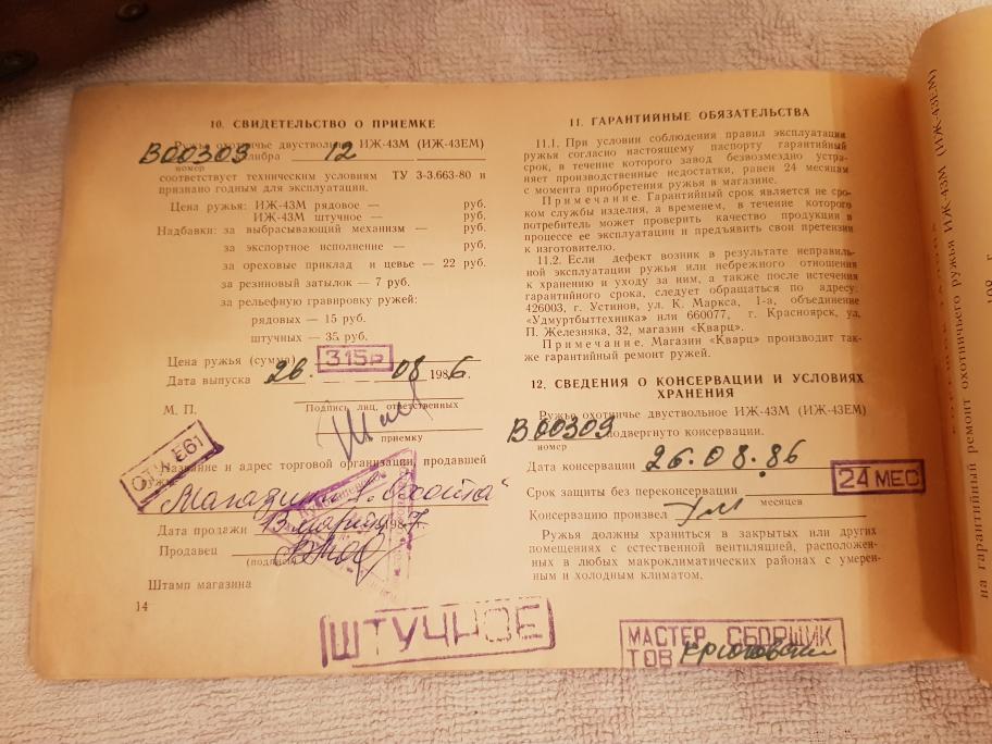 Продам МР 43 Штучное 1986 год. Идеальное состояние , дерево заменено под себя. Стволы вороненные(оценка мастера).