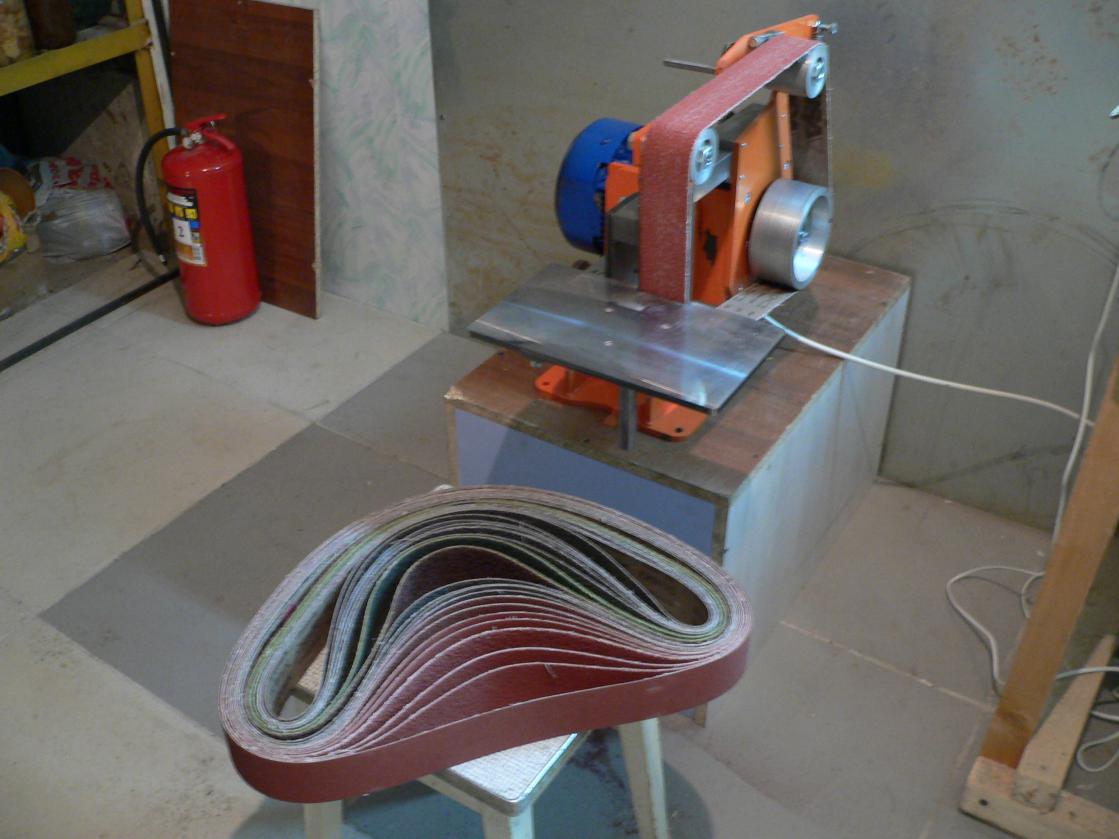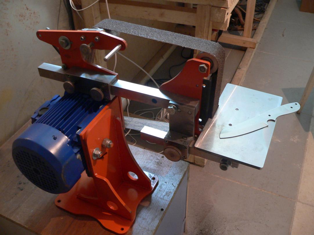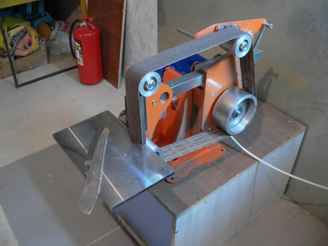 Продам шлифовальный станок гриндер ГР-1 с частотным преобразователем для изготовления клинков ножей, с ним набор лент и приспособление для выведения спусков. Цена: 40000 рублей. В подарок 4 поковки с термообработкой из выпускного тепловозного клапана.