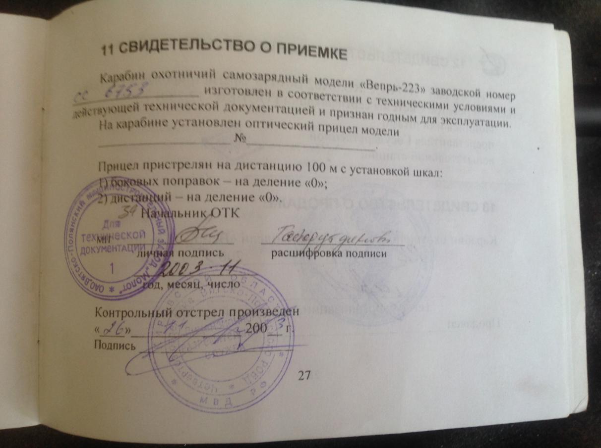 По умолчанию Продам вепрь-223 сок 97 за 35 т.р.
