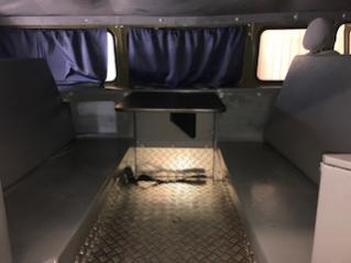 Дисковые тормоза, самоблоки от БТР, лифт, обрезана юбка, ГУР, Webasto, два аккумулятора, мощный генератор, усиленные бампера, лебёдка, багажник во всю крышу, лестница, салон отделан алюминием, рундуки, usb розетки по всему салону, сиденья трансформеры, 3 спальных места во весь рост, откидной столик. наружная светодиодная подсветка по обоим бортам, задняя люстра,