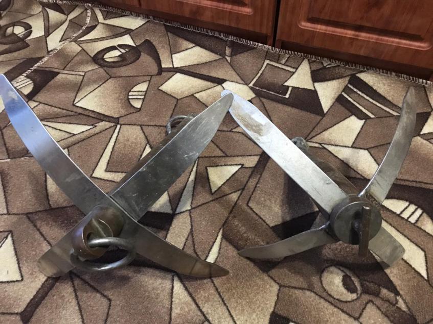 2шт, вес по 7кг каждый. Якоря из латуни, лопасти из нержавейки. Стояли на прогресс-4.