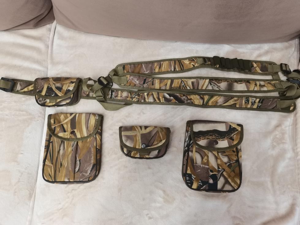 Б/у пару раз.Очень удобная вещь.Вот такой https://www.dmazay.ru/index.php?productID=984 Подсумки и патронташи навешиваются по мере необходимости.Также на верхней шлейке есть патронтаж для патрон. Цена 2 т.р .Возможен обмен на патроны 22LR.