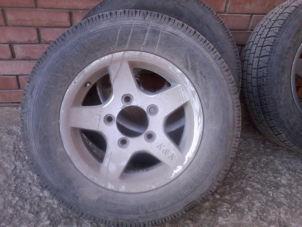 Продам четыре колеса R15. Диски - пятилучевое литьё K&K. Покрышки Баргузин 4х4 205\70. Состояние - отличное, резина прошла менее тысячи км. Продаю за ненадобностью (есть ещё один комплект). Цена 16 тысяч за всё в сборе, возможна продажа дисков или резины отдельно. Реальному покупателю торг. 8-9272-19-22-51 Денис