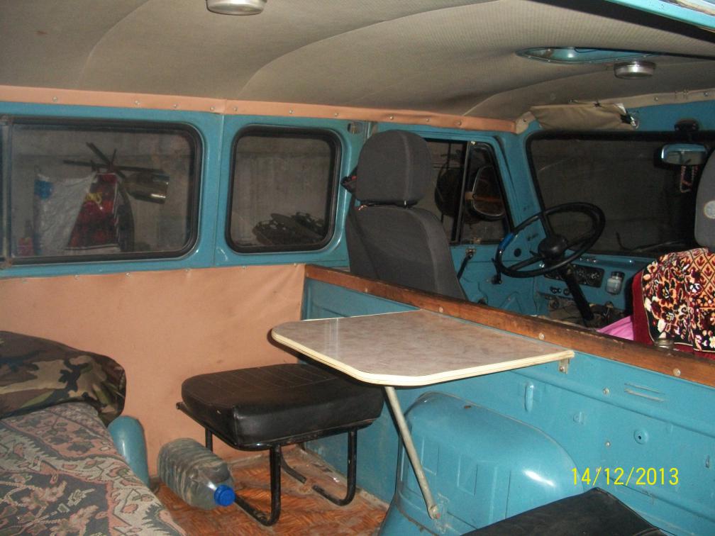 Там же есть фото. Салон разделён на 3 отсека, 1-рулевой и пассажир, 2 пять мест и столик, 3 для собак и прочих вещей.