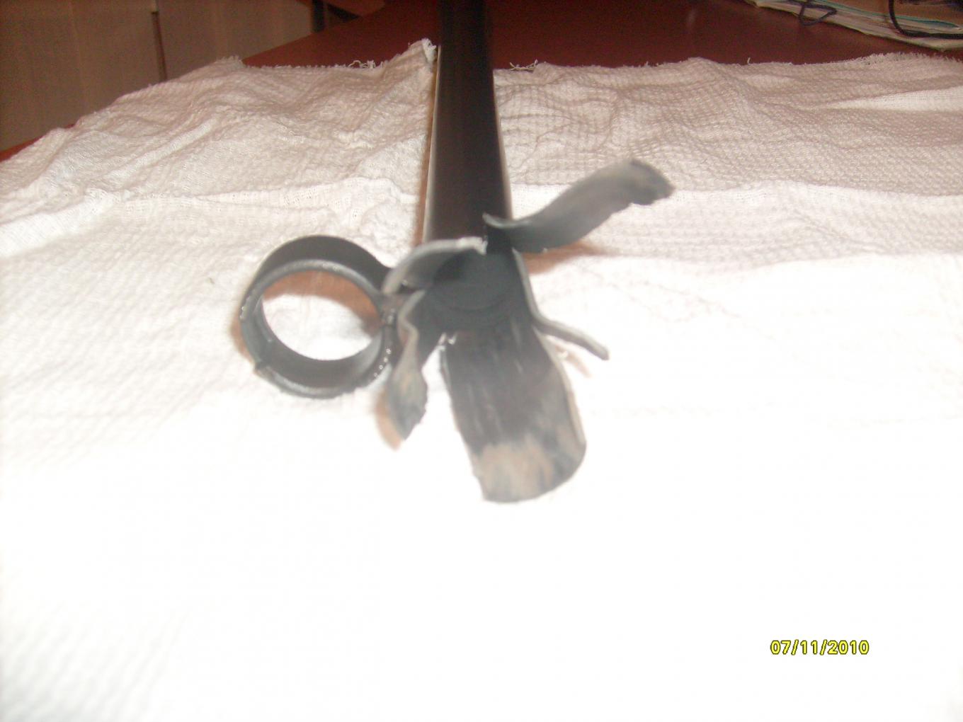 Приехали на место .зарядили .утка есть но далеко,стрелять не стали.Вернулись к машине решили пристреляться по пластику.Заклиниваний не было, патрон в панронник входил как обычно,ружье не падало. Сначало стрелял главпатроном 12*70 навеска 34 гр.(3-ка) потом зарядил феттер 12*70 32гр.(5-ка) .......А потом -то что на фото.Ракетницами не разу даже и не пробовал стрелять.