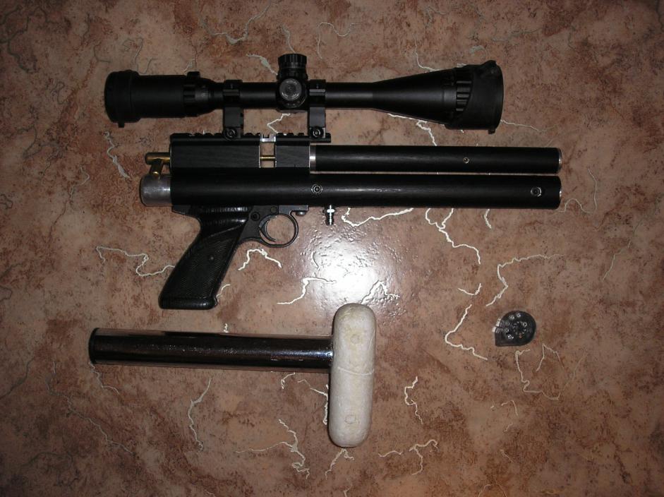 По пистолету: стволик крысиный длиной 20 см, общая длина 40 см, настроен на 235-230 мыс порядка 20 выстрелов с 235-140