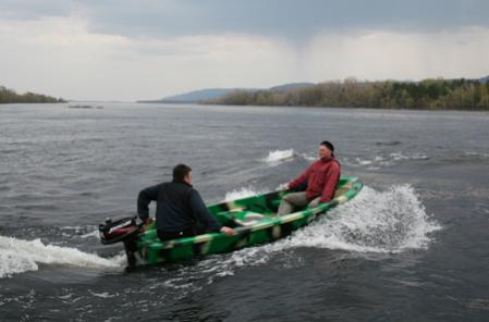 сегодня смотрел микру, показалась - тонкий материал она не скрипит когда ходишь на воде? и места в рундуке под бак мало, его придется в кокпите ставить. год выпуска лодки у вас какой?
