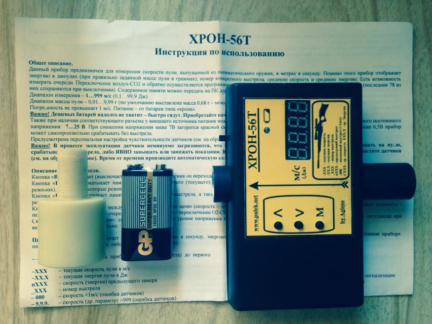Наствольный хронограф "Хрон-56Т" предназначен для измерения начальной скорости пули пневматического оружия. Хронограф устанавливается непосредственно на ствол пистолета или винтовки. Тип - оптический, то есть фиксирует любую пулю (будь то свинец, сталь или пластик), прошедшую по центру трубки прибора. Каждый прибор тщательно проверяется и калибруется индивидуально.