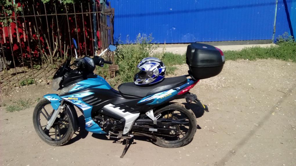 Китаяся. шторм индиго 125 кубиков, по докам 49.9, тобиш регистрировать не нать. брал б.у. за 23 тыра, новый за 40 - 46 тыр. я 80 кг + багаж кил. 5 идёт под сотку. от кошелька до Авроры в самые жуткие пробки 35 мин. а так 20 - 30 мин.