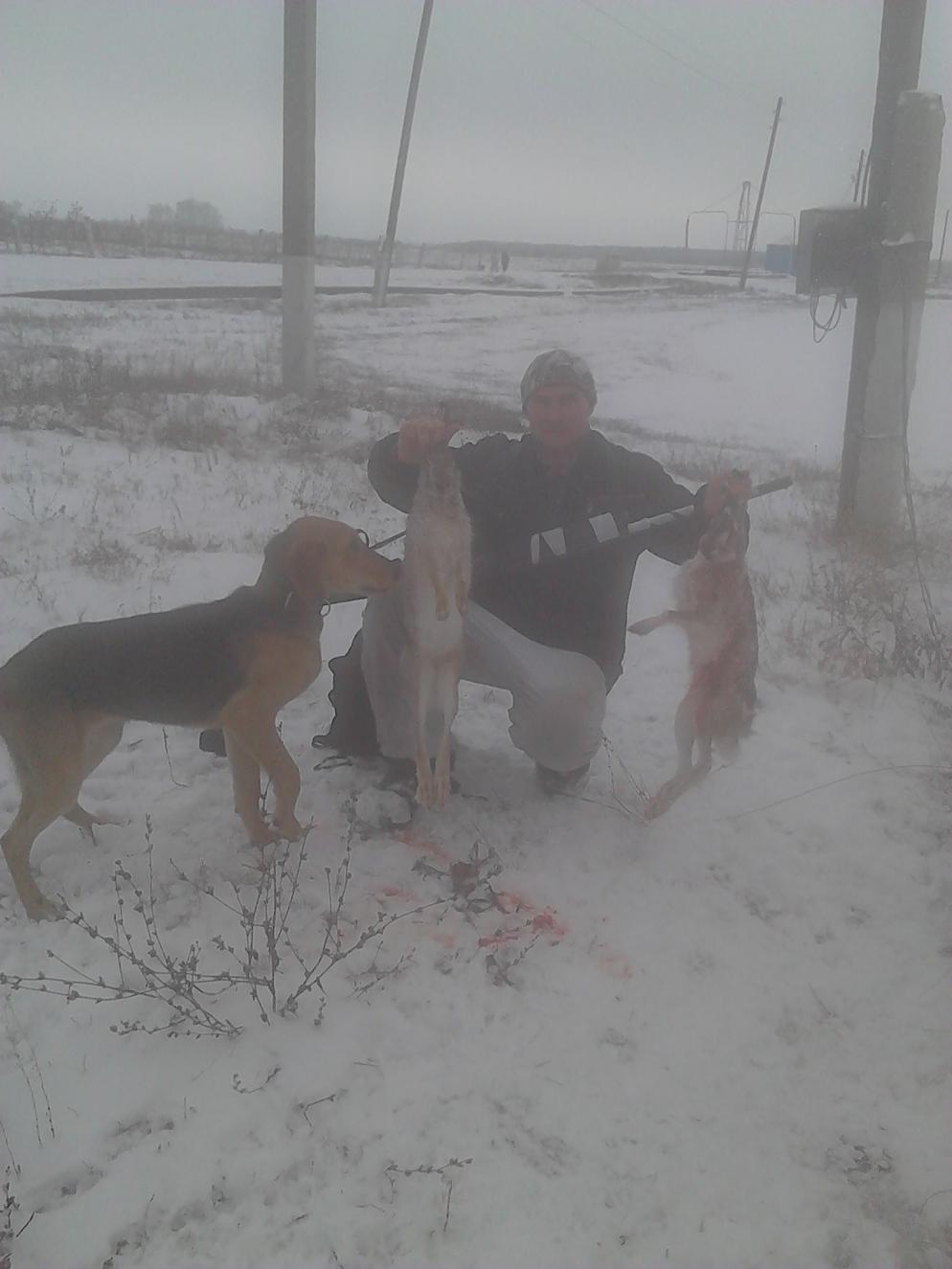Вообщем бросили идем дальше следов все больше и больше.... напарник поднимает еще 2х... которые свалили заграницу ОУ. Тут я натыкаюсь на свежую лежку и вот подъем,на 3ем круге был взят. Идем дальше ещё подъем добыт на 2ом круге. Затем батя поднимает ещё одного...после 2х выстрелов косой лешается ноги,но бегает) ещё км 4 дал, в итоге был найден под деревцом, не понятно вроде крови не было... в итоге 2 дробины, 1 перебила ногу 2ая прошла через сердце. на рану стойкий оказался.... итог дня 9 подъемов 3 добыто!) Погода супер!!!