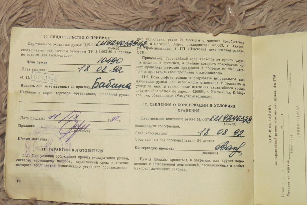 Продается ружье 12 калибра ИЖ27ЕМ 1992 г.в. Настрел 150 - 200 патронов. Состояние на 5. Ружье сказка, продается для освобождения места в сейфе. Продает друг, отношение в оружию очень бережное. Цена 13500 рублей. Реальному покупателю торг!